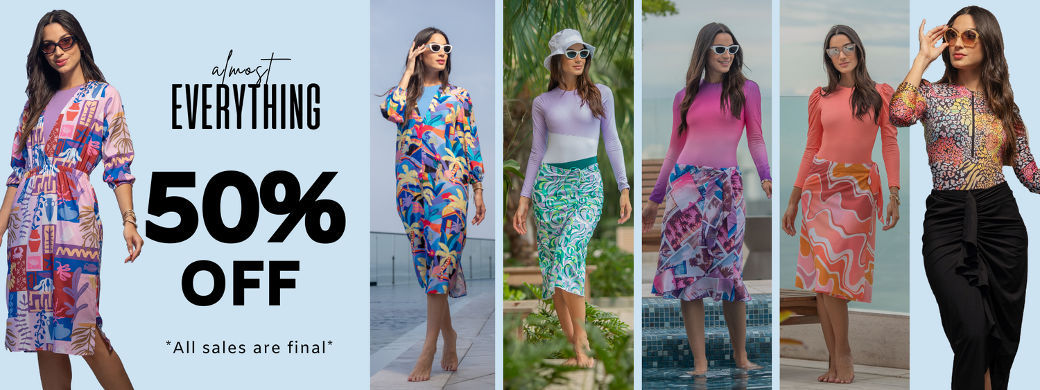 Write to us and you can choose from available prints, swimsuits styles, skirt lengths, sizes, quantities...
