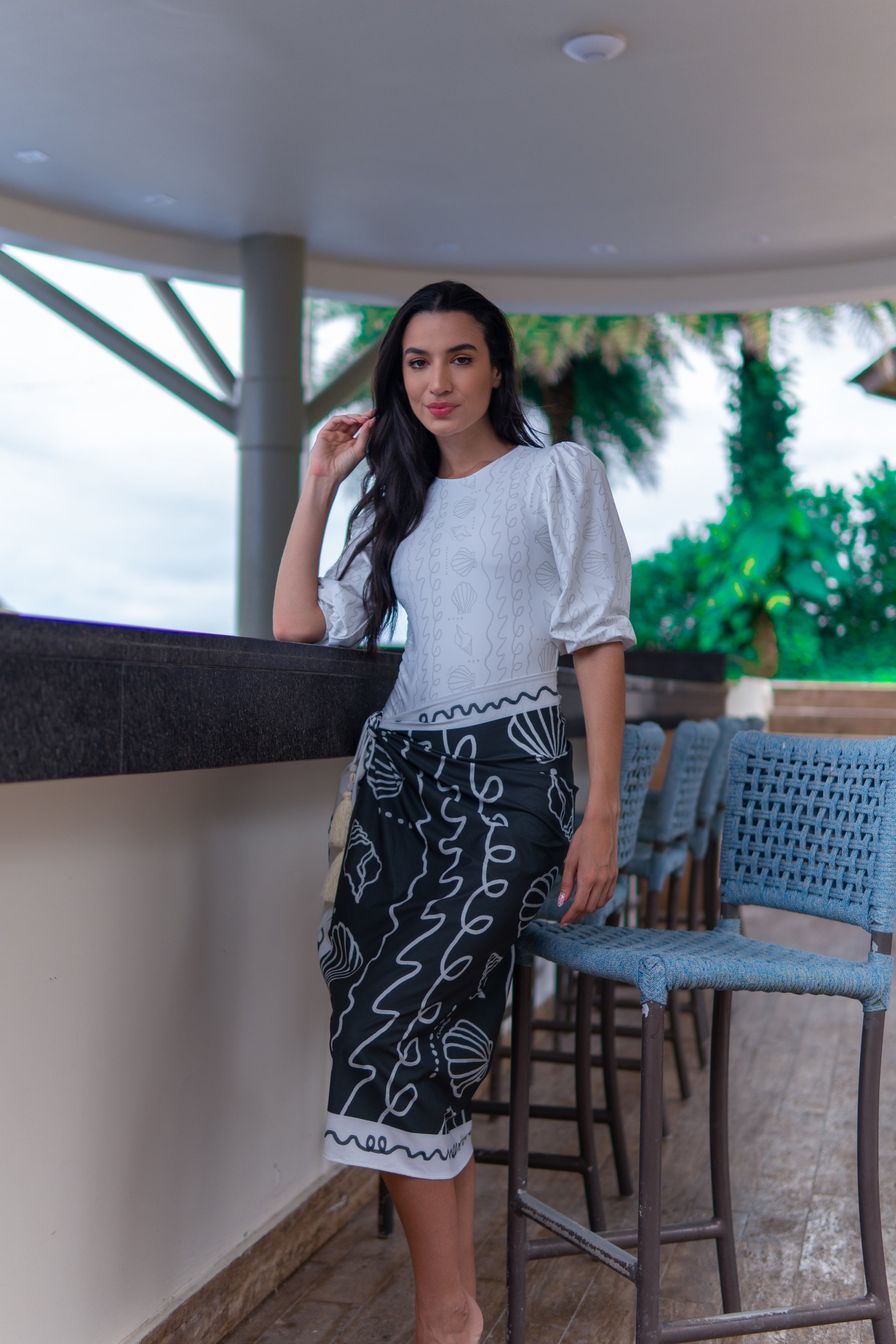 Make a splash with the MOANA PEARL PUFFY Swim Duo Set, your ticket to poolside confidence. The crisp white bodysuit features chlorine-resistant fabric that stays vibrant and fade-free, no matter how often you dive in. Back zipper closure with Puffy-sleeves options gives you flexibility for any water adventure. Complete the look with the printed tie-waist skirt that adds a fun, flirty vibe to your beach days. Bold, beautiful, and built to last—this is the duo that keeps up with your aquatic lifestyle.