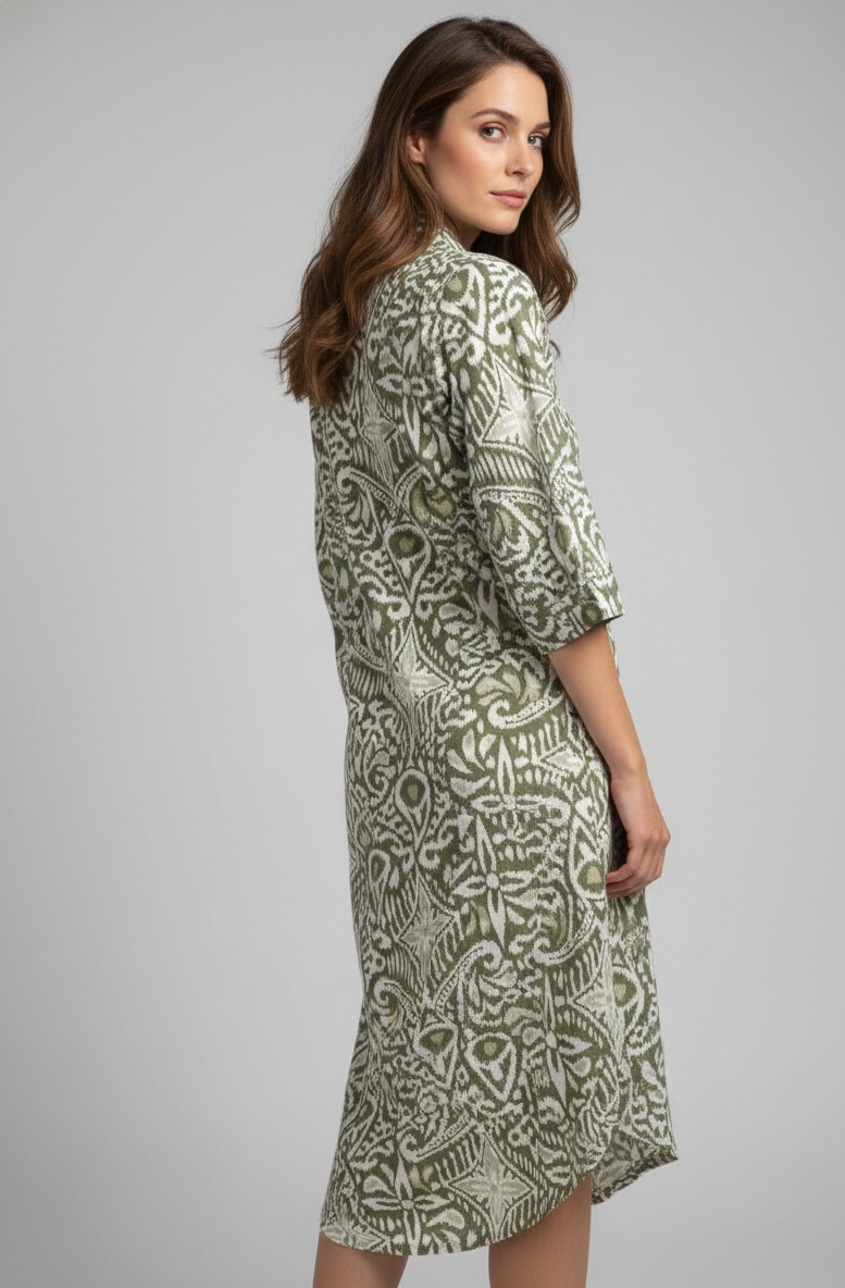 Make waves in the CAREY BAY RESORTWEAR—your ticket to effortless vacation style! This 100% cotton stunner rocks a chic linen look with three-quarter sleeves that's perfect for all-day wear. The quick-dry fabric means less time worrying and more time enjoying, whether you're sailing, sunbathing, or exploring the beach. One size embraces everyone. (Sunscreen is your best friend!)