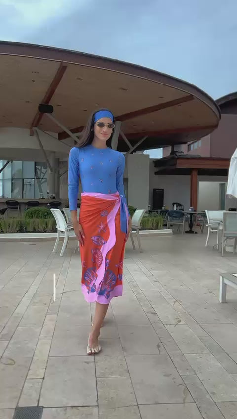 Dive into ocean depths with the STELLA CORAL Swim Duo Set, where vibrant marine inspiration meets modern style. This playful two-piece features a long-sleeve bodysuit with a convenient back zipper for easy on-and-off, paired with a uniquely designed wraparound pareo skirt that captures the essence of tropical coral reefs. Perfect for beach days, pool parties, or anyone who loves making a splash with coordinated swimwear that celebrates the beauty of the sea.